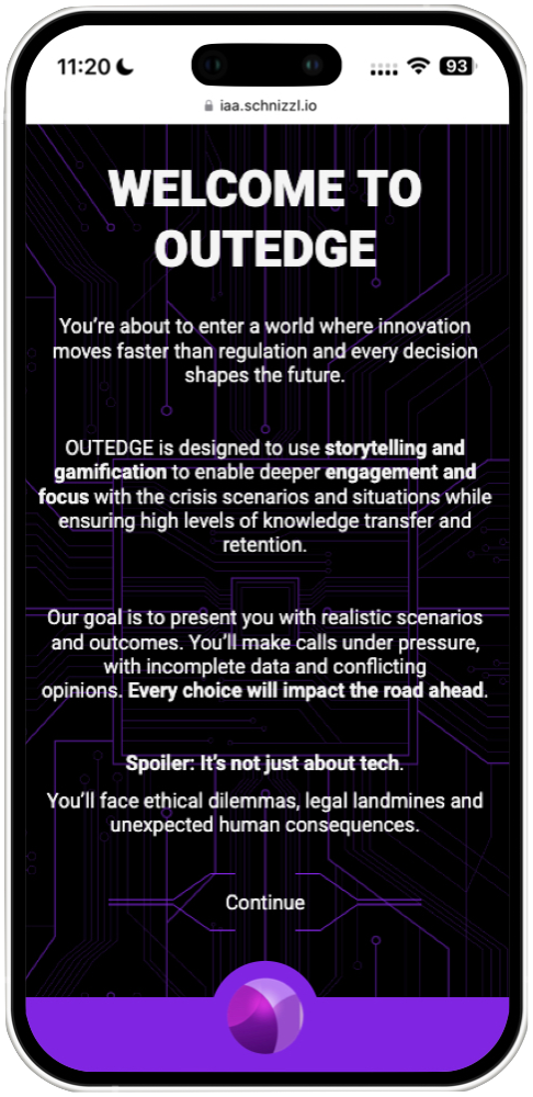 Outedge transforms decision-making into a narrative simulation, where executives face high-stakes scenarios such as AI risk, reputation management or internal communication breakdowns.